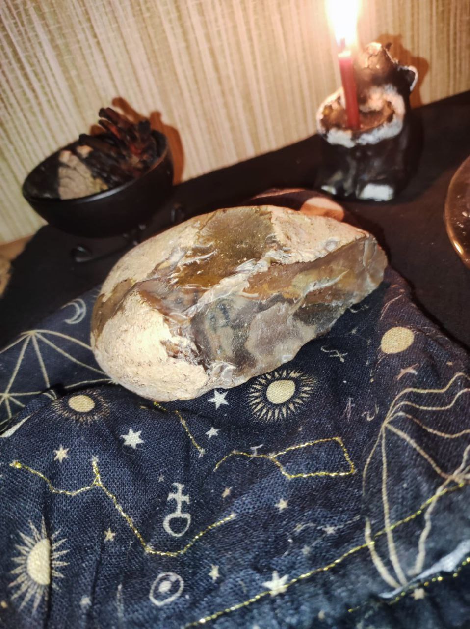 Просмотреть получилось успешно. Выяснилось, что предмет, как не странно, работает больше с энергией живых, чем мертвых. Т.е. он имеет другие характеристики нежели взять какой-нибудь предмет с обычного кладбища, который 100% будет фонить и отбирать энергию домочадцев и разрушать пространство. Этот камень не оттягивает, а стабилизирует энергию владельца, причем хорошо работает со сновидениями, улучшая их Но чего то выше в нем я не обнаружил, т.е. какой-либо значимой информационной компоненты я не нашел. Значит ее можно будет «накатить» позже ритуально по запросу моей клиентки.