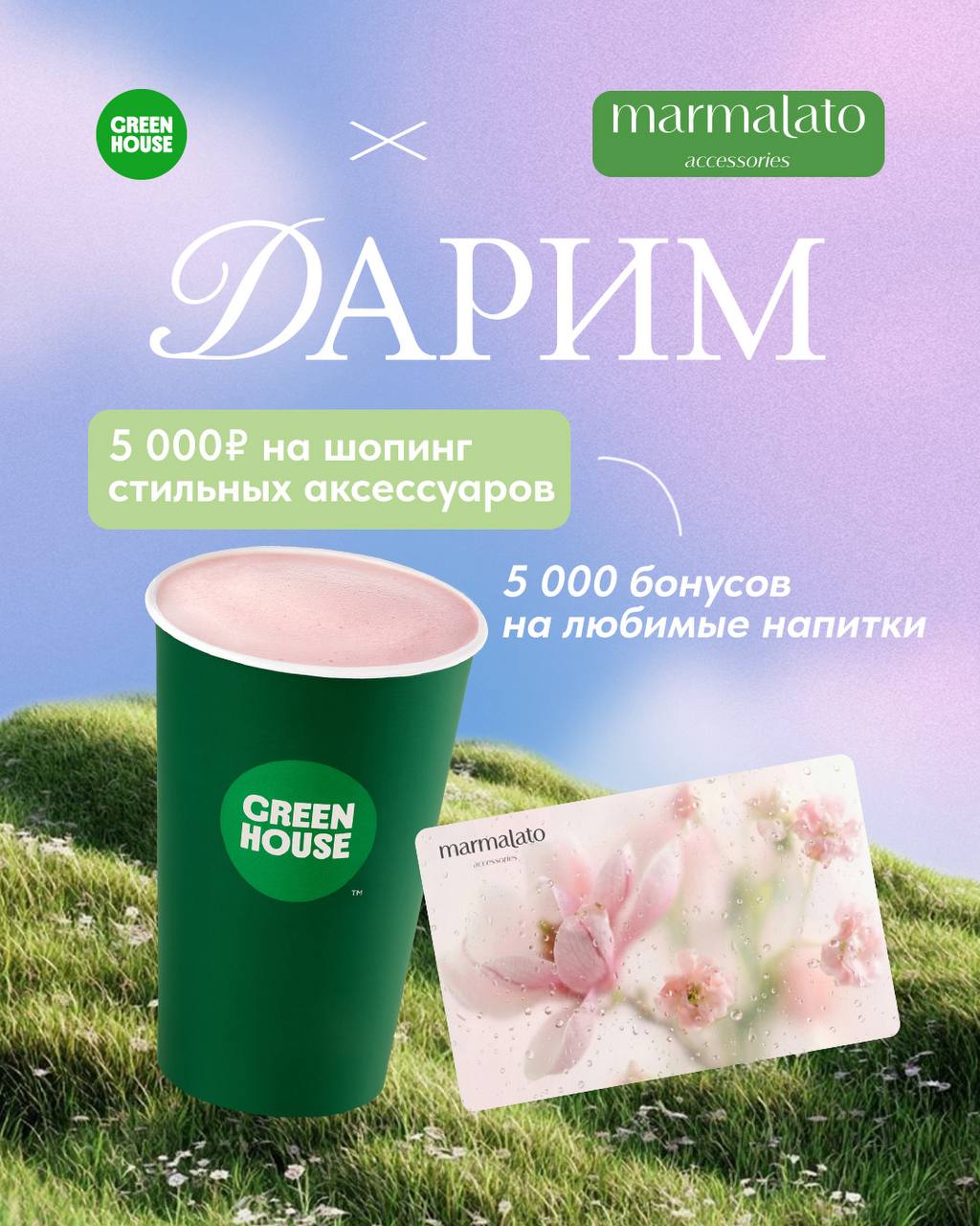 Победителей будет 5, каждый из них получит по сертификату на 1000₽ в Marmalato и по 1000 бонусов на бонусную карту Green House.