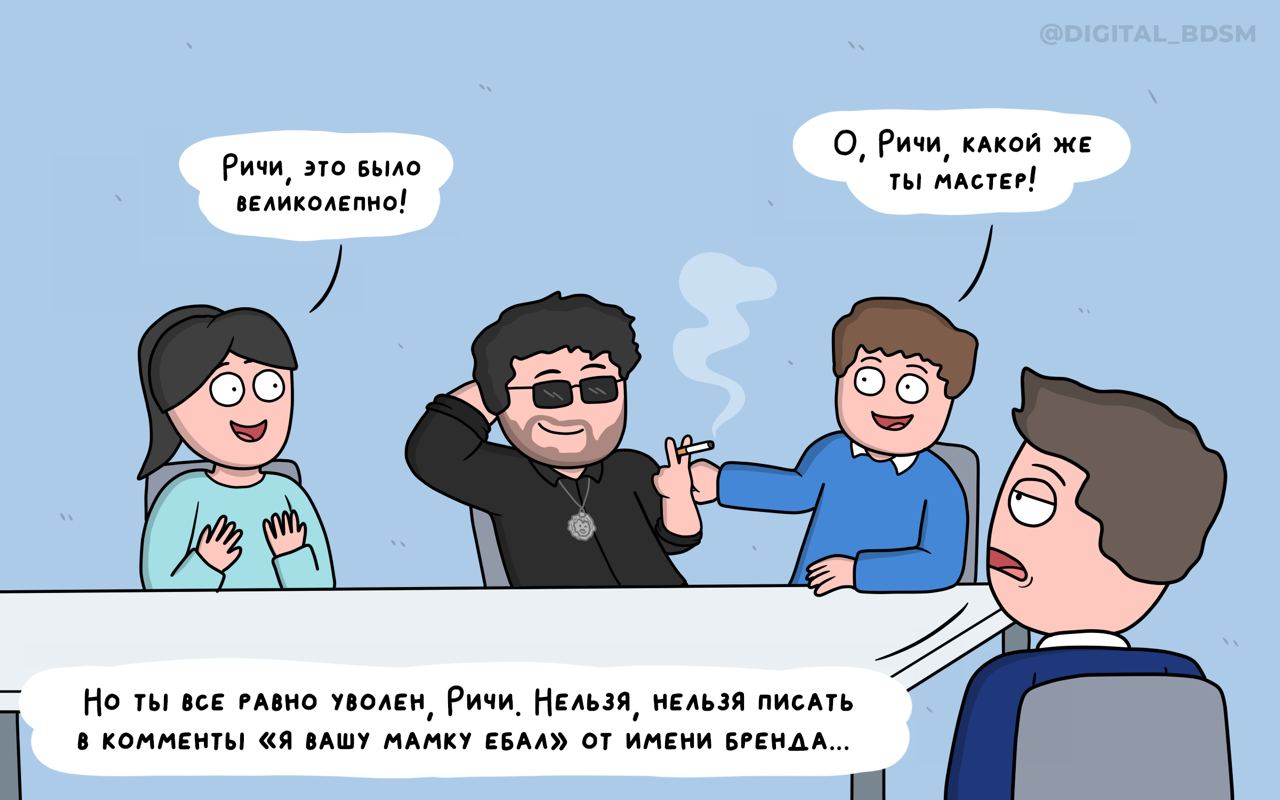 Любой живой аккаунт в соц.сетях рано или поздно сталкивается с критикой. Грустно, обидно, — окей, понятно, но что дальше? Ретивые блюстители репутации тут же бросаются удалять негатив, но такая стратегия провальна по умолчанию. Почему?