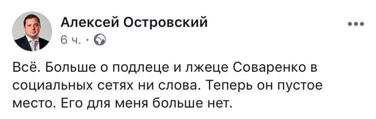 Депутаты Смоленска под давлением губернатора Алексея Островского приняли решение об отставке главы города Смоленска Владимира Соваренко. Явный заговор против главы можно было наблюдать прямо на голосовании горсовета, где Островский показал вид заговорщика с надзором. Не говоря уже о его детской радости после объявления результатов.