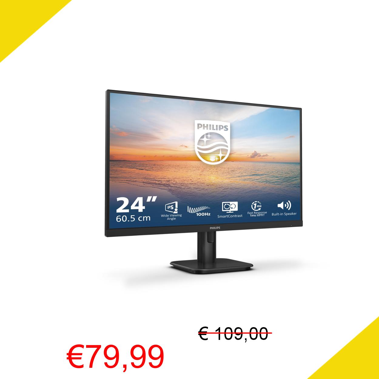 💥 Philips 24E1N1200A - Monitor Full HD da 24 pollici, 120 Hz, Adaptive Sync., altoparlanti (1920x1080, 1x D-Sub, 1x HDMI 1.4, 1x DisplayPort 1.2) nero