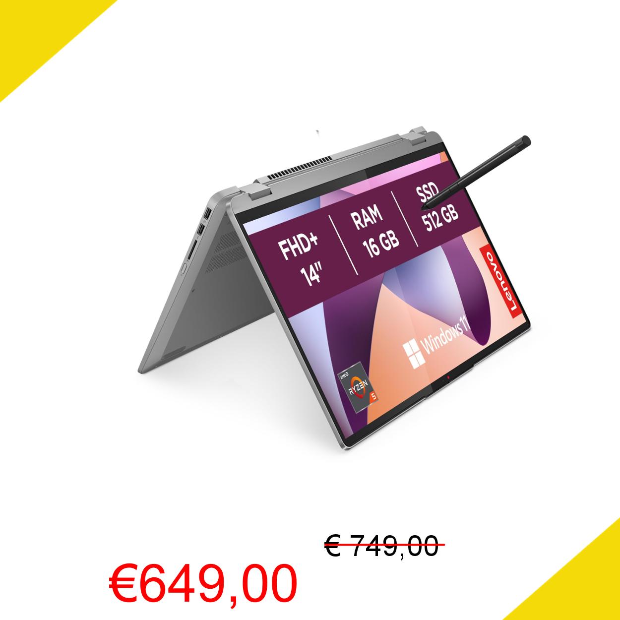 💥 Lenovo IdeaPad Flex 5 Notebook - AMD Ryzen 7 7730U, RAM 16GB, 512GB SSD, Display 14" Touch WUXGA (1920x1200) IPS, Windows 11 Home, Tastiera italiana, Digital Pen inclusa - Arctic Grey