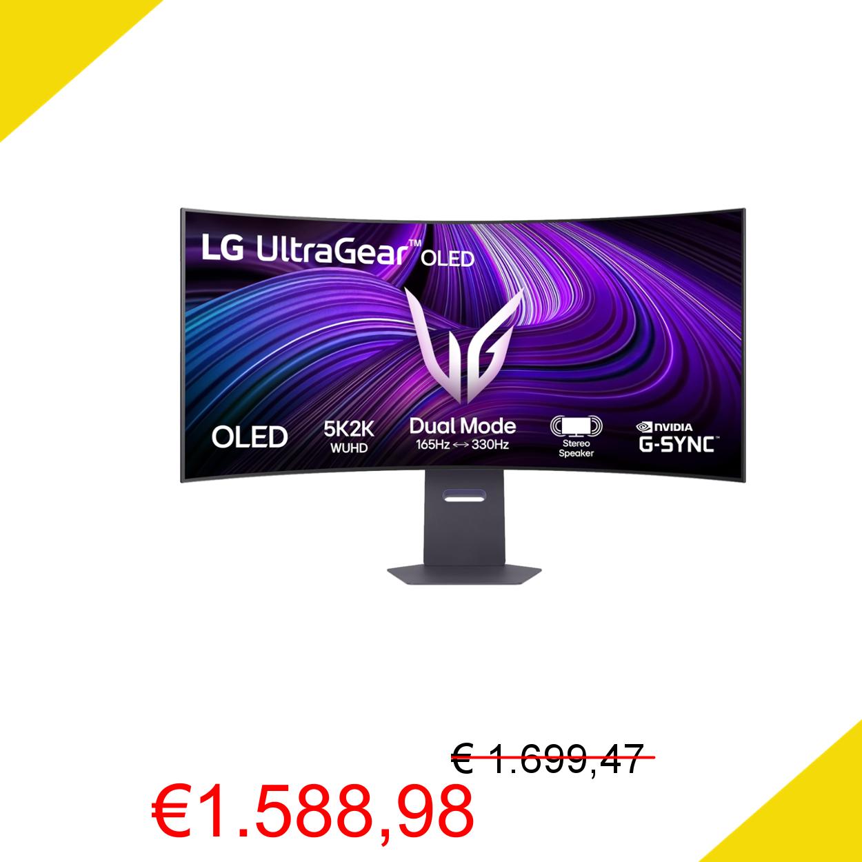💥 LG UltraGear OLED 45GX950A Monitor Gaming 45" 5K2K (5120x2160), 21:9 Curvo, 165Hz, Dual Mode, 0,03ms (GtG), Speaker Stereo 10W, G-Sync, FreeSync Premium Pro, HDMI 2.1, DisplayPort 2.1, USB-C, Nero