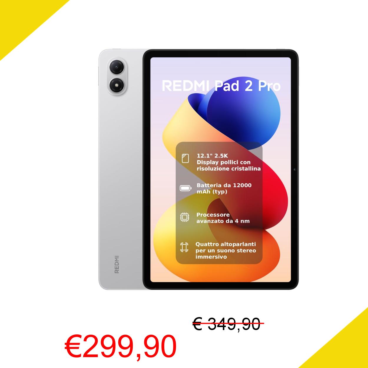 💥 XIAOMI REDMI Pad 2 Pro, 8+256GB, Display 12.1" 2.5K 120Hz, Batteria 12000mAh (tip), Processore 4nm, Interconnettività Smart, Garanzia 2 anni, Silver, Caricatore non incluso