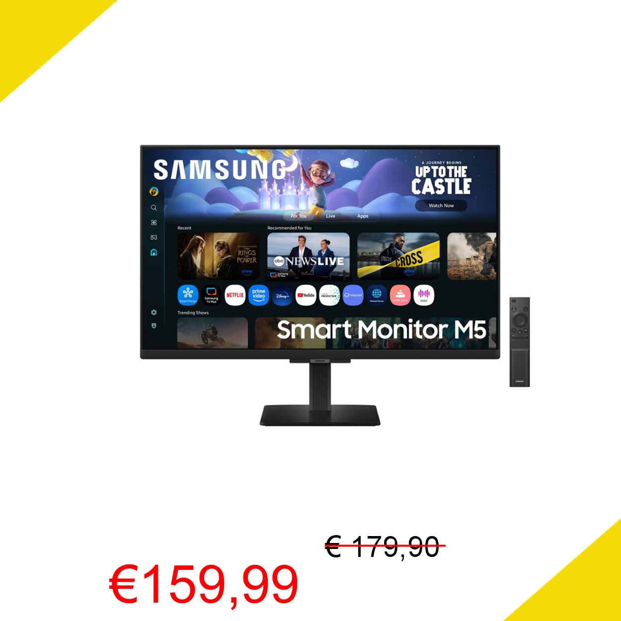 💥 Samsung Smart Monitor M5 (S27FM502EU), Flat 27'', 1920 x 1080 (FHD), Smart Hub con AI, Office 365, Gaming Hub, Speaker integrati, Telecomando, WiFi, HDMI, USB