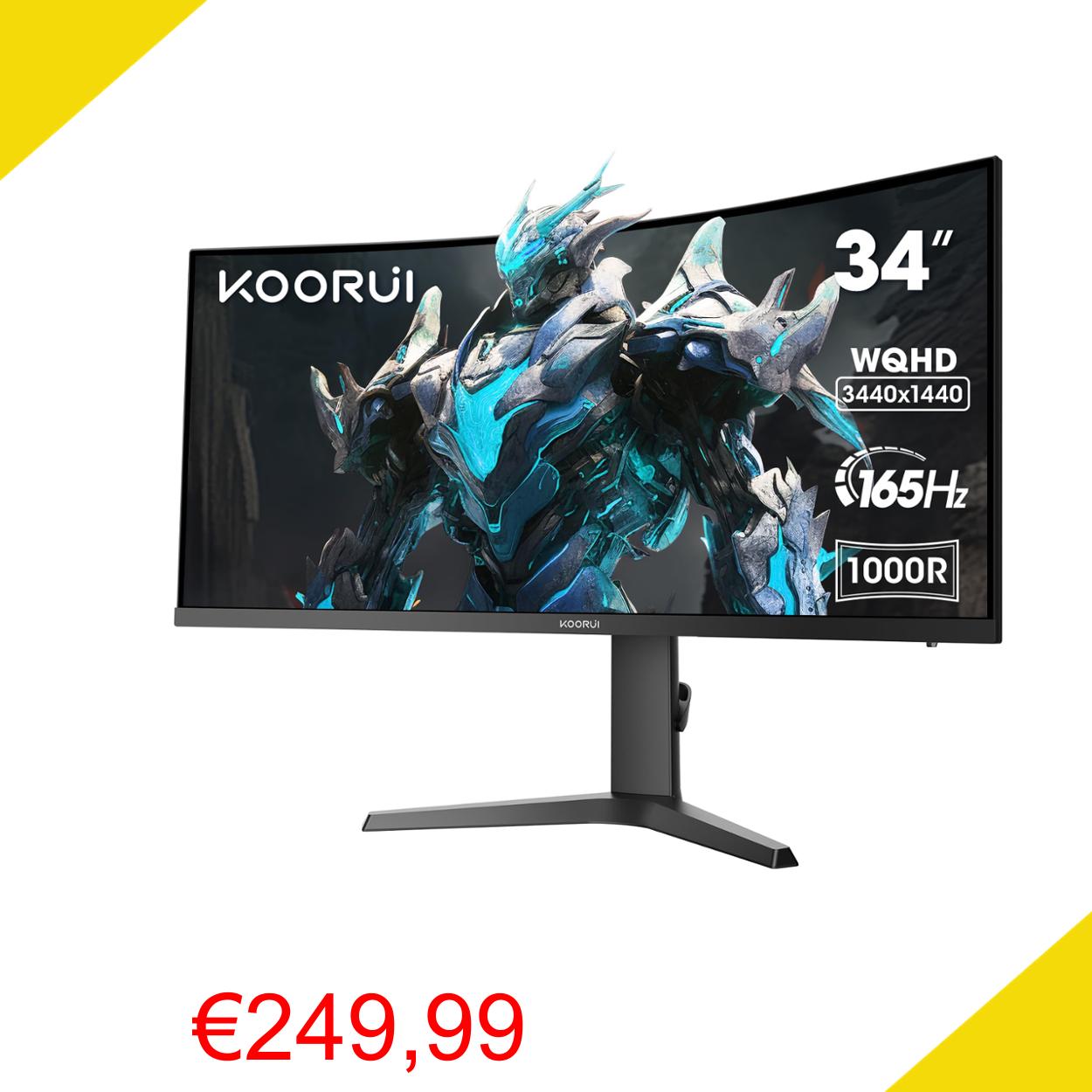 💥 KOORUI Monitor Gaming Curvo 34 Pollici, 180Hz, 1ms, 1000R, UWQHD 3440x1440, HDR400, DCI-P3 90%, Adaptive Sync, 2xHDMI & Display Port, VESA 75 * 75mm
