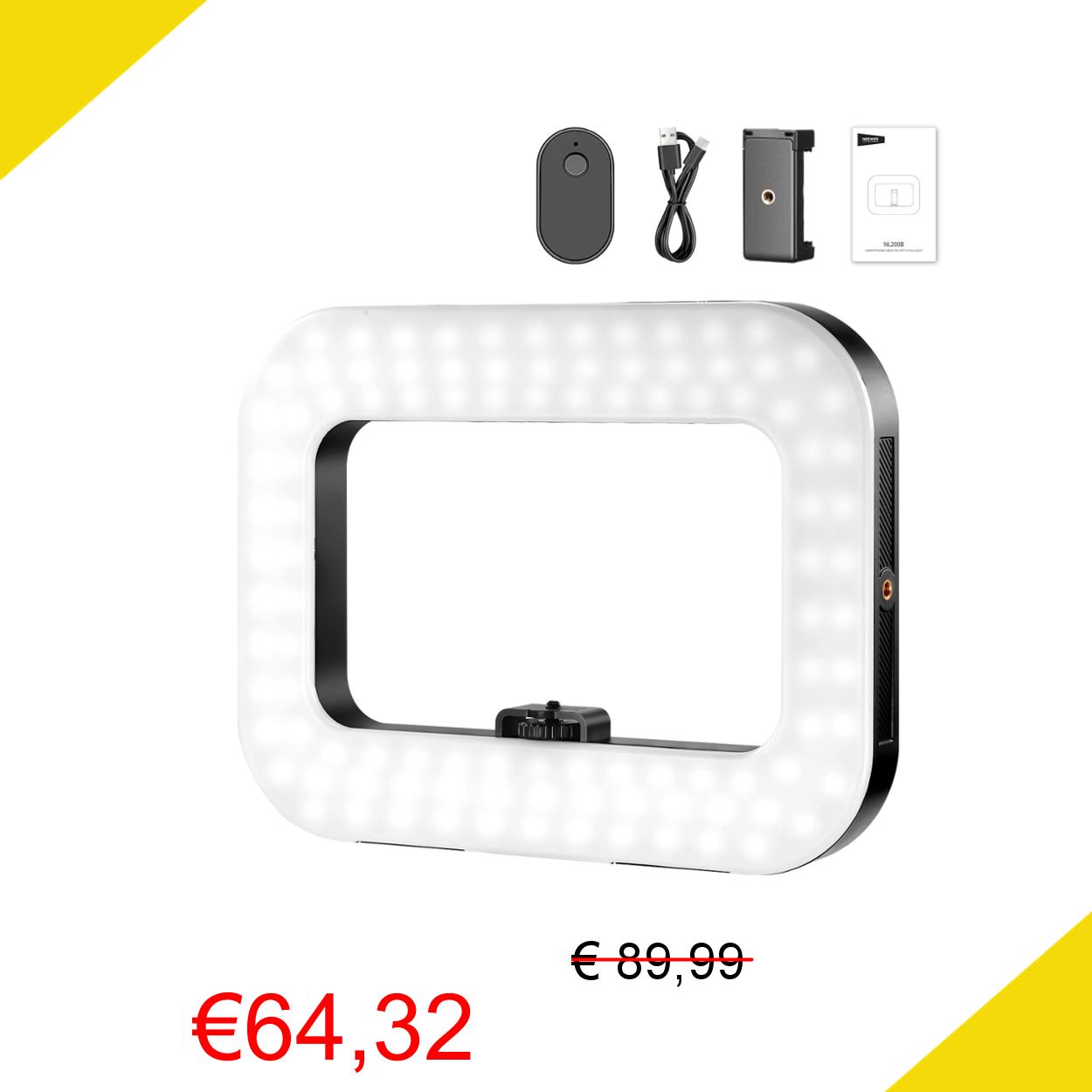 💥 NEEWER ENTRY LEVEL VERSION Phone Video Rig con Luce, Stabilizzatore Portatile con Ring Light Quadrata LED Bicolore da 20W, 3 Cold Shoe/Batteria 5200mAh/CRI80+ per Selfie Streaming Video Vlog, NL200B