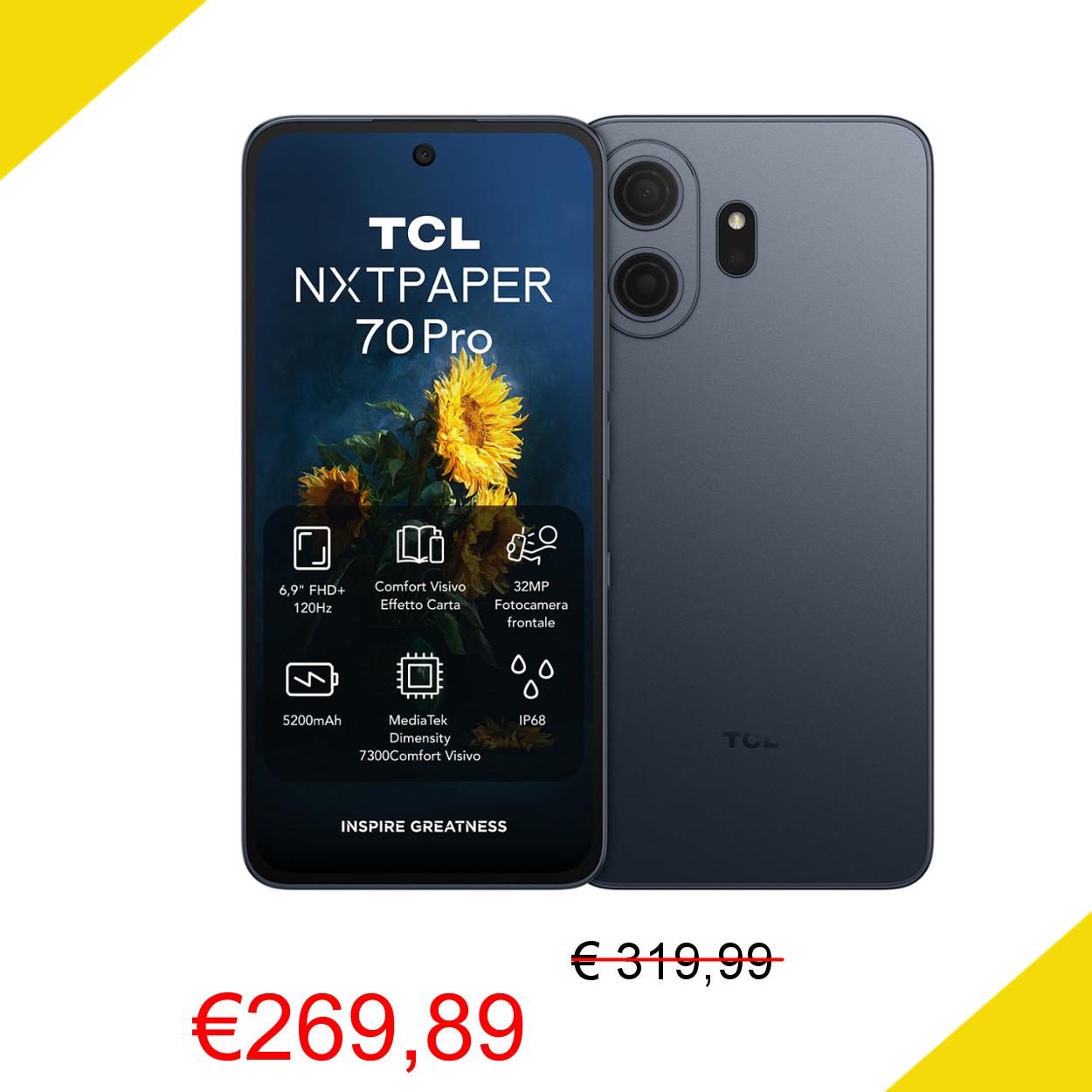 💥 TCL Smartphone Android NXTPAPER 70 Pro 5G, Smartphone con display NXTPAPER 4.0 da 6,9", fotocamera 50MP OIS, 256GB+8GB, chipset Dimensity 7300, colore blu stellare