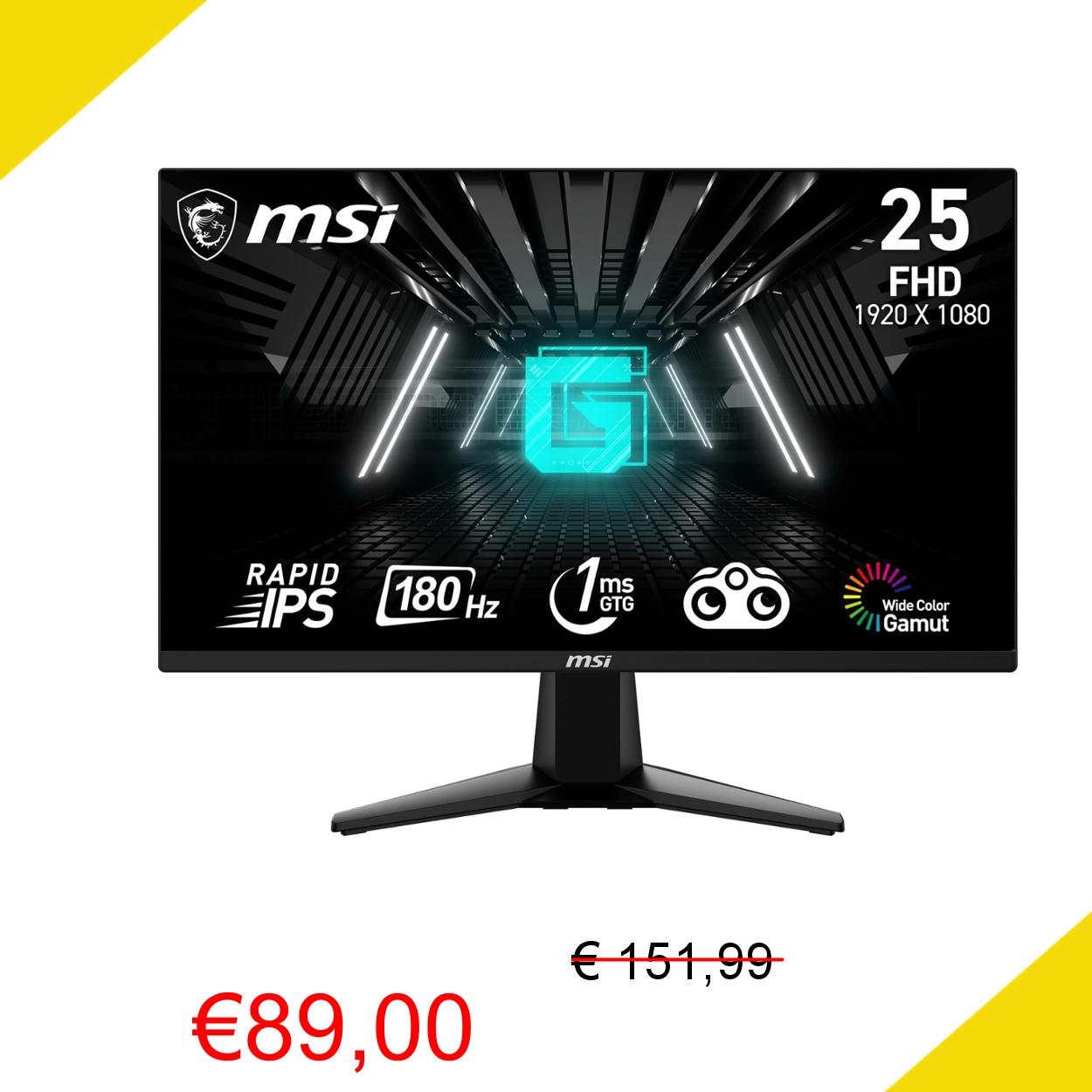 💥 MSI G255F Monitor Gaming 24,5", 180 Hz, 1ms, Rapid IPS, FHD (1920x1080), Adaptive SYNC, Night Vision, Anti-flickr, Less Blue Light - Display Port 1.2a / HDMI 2.0b