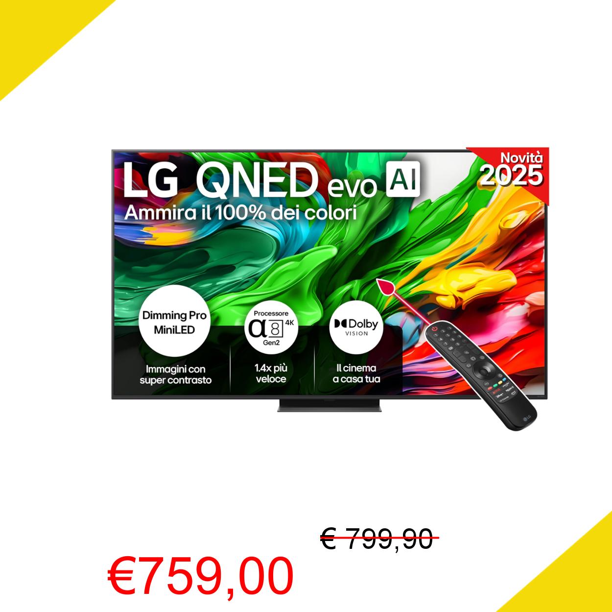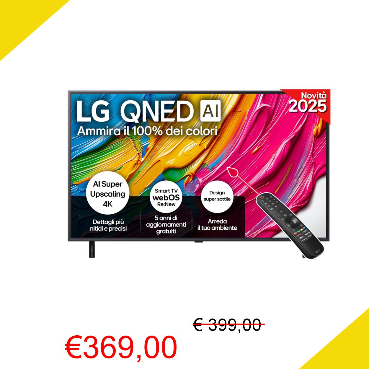 💥 LG QNED AI QNED80 TV 50 pollici, Smart TV 4K, Processore α7 Gen8, Dynamic QNED Color, Design Super Slim, webOS con AI e telecomando puntatore AI, Gaming con VRR 4K@60Hz, 50QNED80A6A 2025