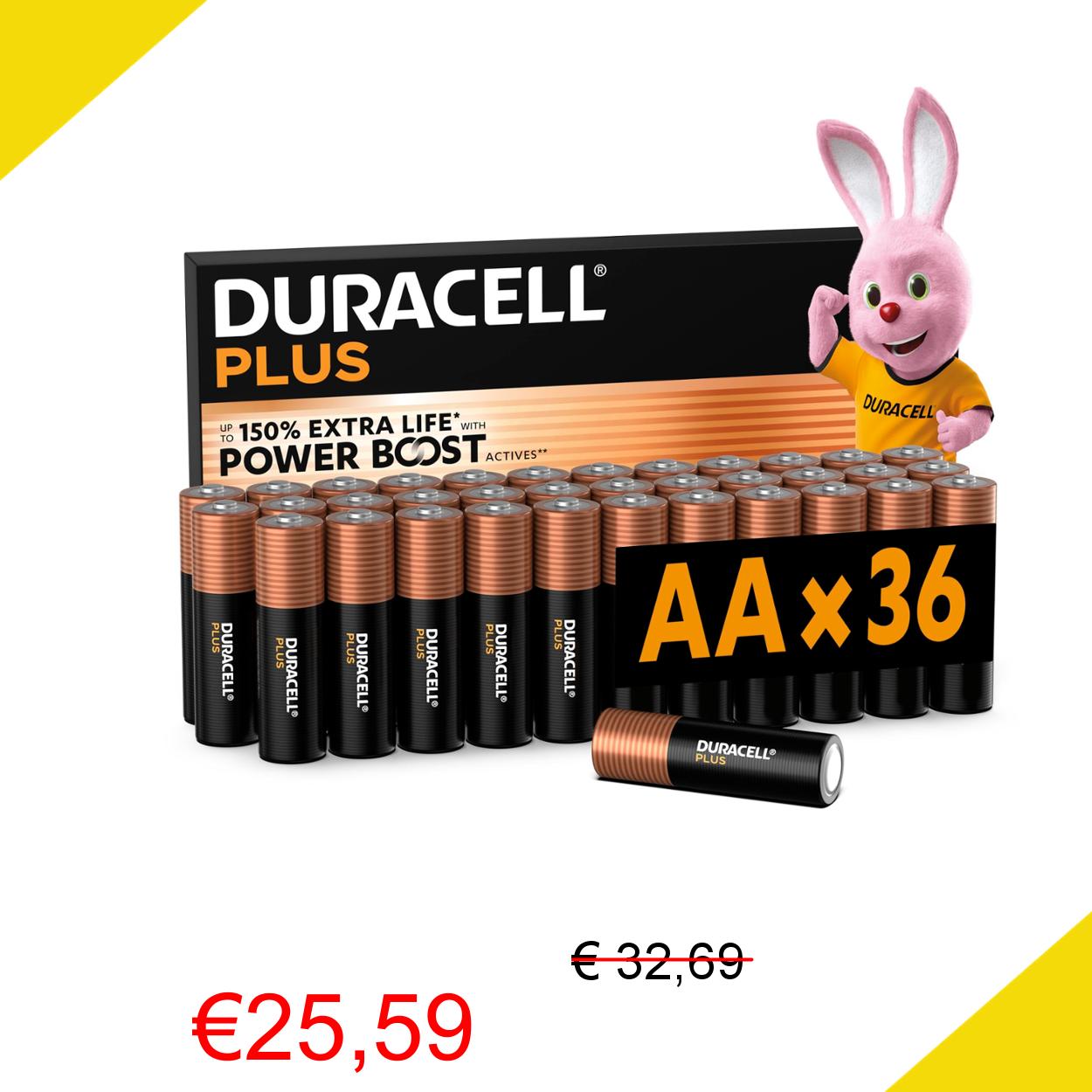 💥 DURACELL Batterie Plus AA (Confezione da 36) – Batterie Alcaline da 1,5 V – Fino al 150% di durata extra con Attivi POWER BOOST– Affidabilità per i dispositivi di utilizzo quotidiano –MN1500