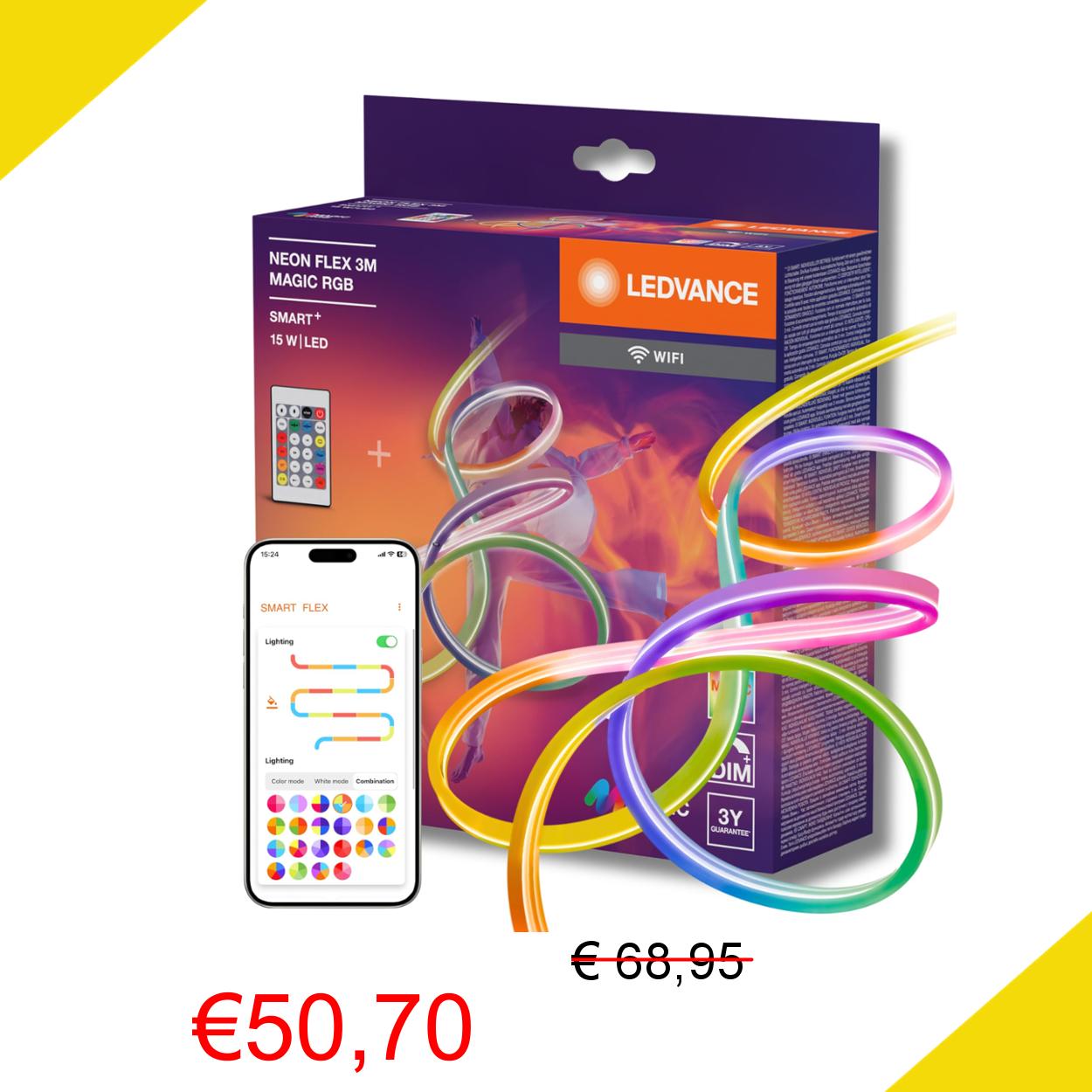 💥 LEDVANCE SMART WIFI NEON FLEX MGC RGB RC strisce LED colorate per uso esterno con tecnologia WiFi e distribuzione omogenea della luce; dimmerabile; bianco; silicone; 3 m; lampadina non sostituibile