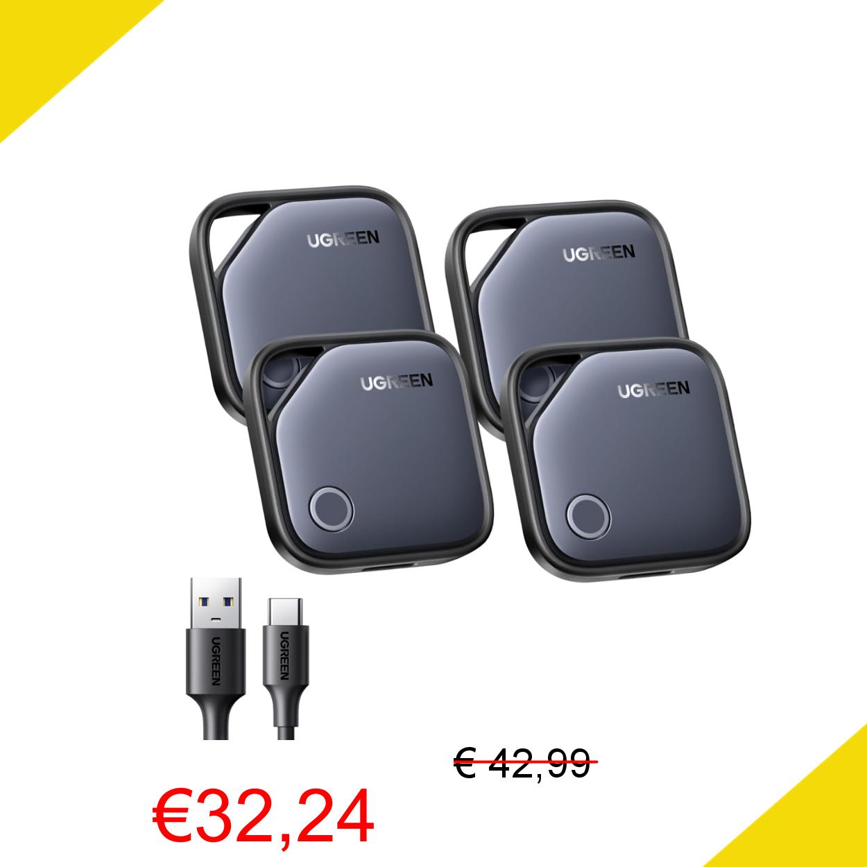💥 UGREEN FineTrack Smart Finder Ricarica USB-C Localizzatore Supporto iOS SmartTag Tracker Bluetooth Localizzazione per Chiavi Bagaglio Portafoglio Bicicletta Zaino Borsa (4 pezzi)