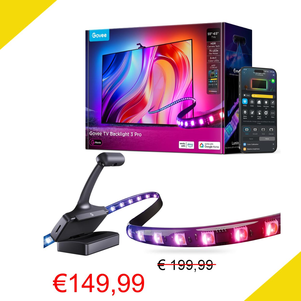 💥 Govee TV Backlight 3 Pro con Tripla Telecamera HDR, 5 in 1 RGBWWIC Striscia led TV Intelligente 3,6M per 55-65 pollici, 75 LED/m, Supporta Filtro AI, APP e Controllo Vocale, Sincro DreamView