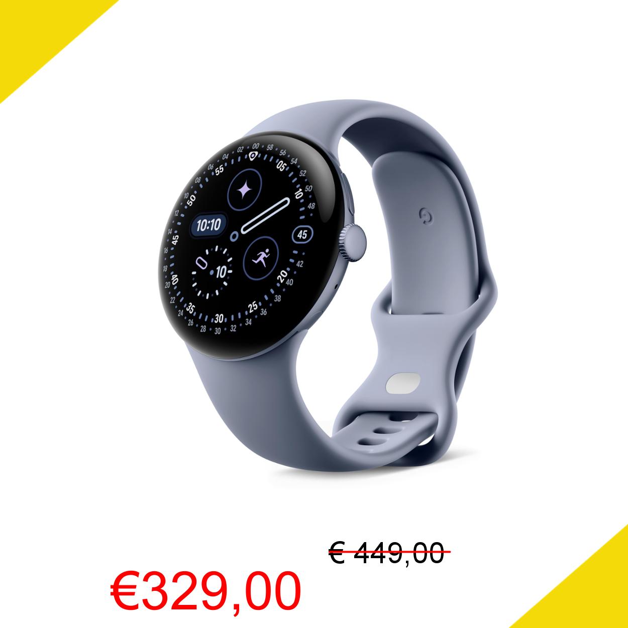 💥 Google Pixel Watch 4 (45 mm) - Smartwatch Android con tracker per fitness e benessere, e assistente virtuale Gemini - Cassa in alluminio grigio argento - Cinturino sportivo grigio argento - Wi-Fi