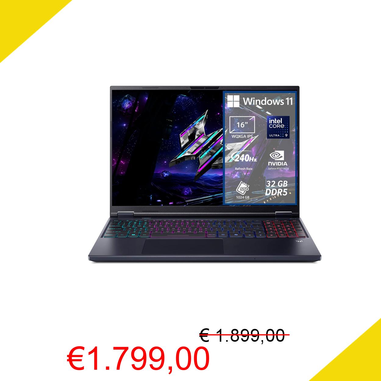 💥 Acer Predator Helios Neo 16 AI PHN16-73-91XB Notebook Gaming, NVIDIA GeForce RTX 5070 8 GB GDDR7, Intel Core Ultra 9 275HX, RAM 32 GB DDR5, 1 TB SSD, Display 16" WQXGA 240 Hz DDS, Windows 11 Home