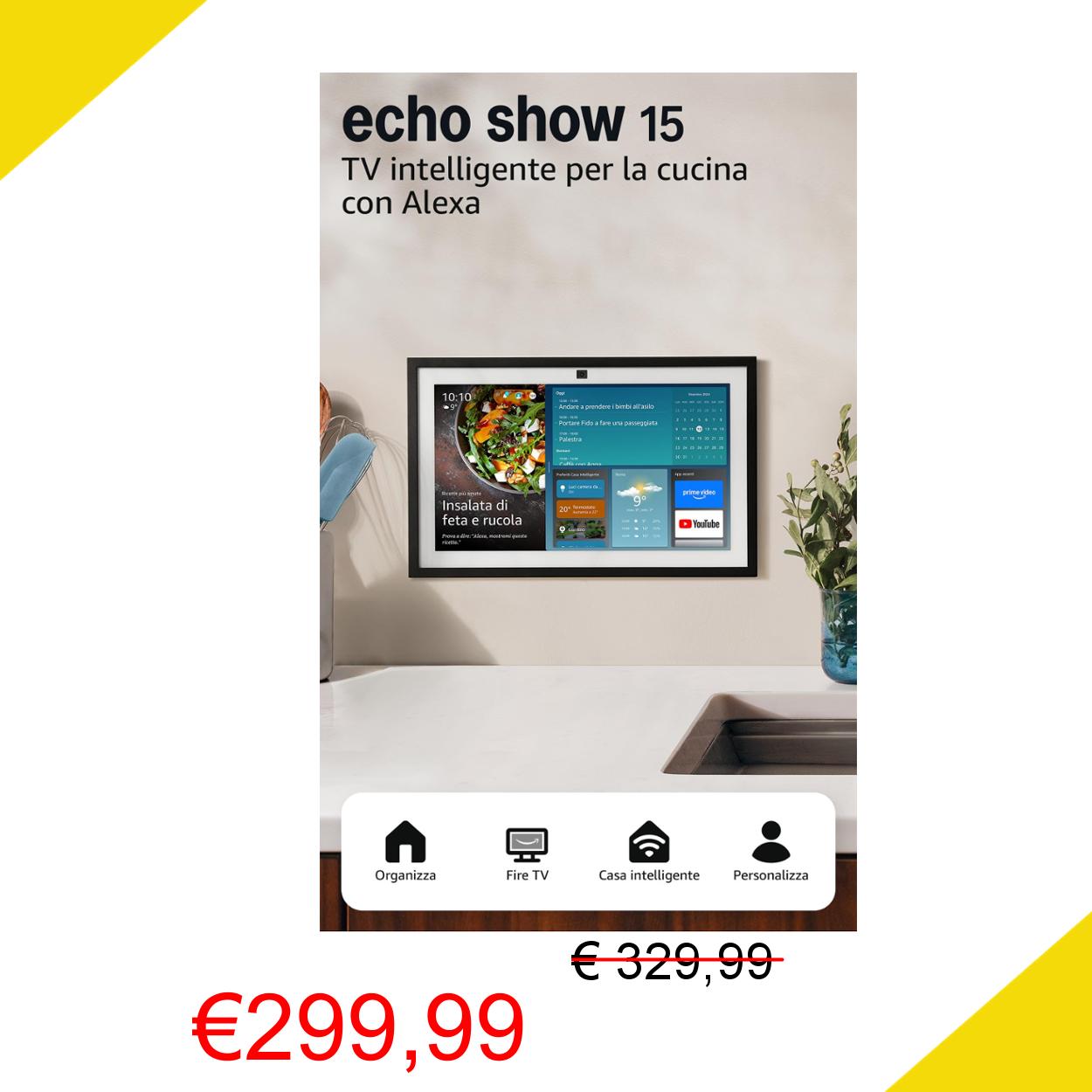 💥 Amazon Echo Show 15 (Ultimo modello) | Schermo intelligente Full HD da 15,6” con Alexa, Fire TV integrata e telecomando vocale Alexa
