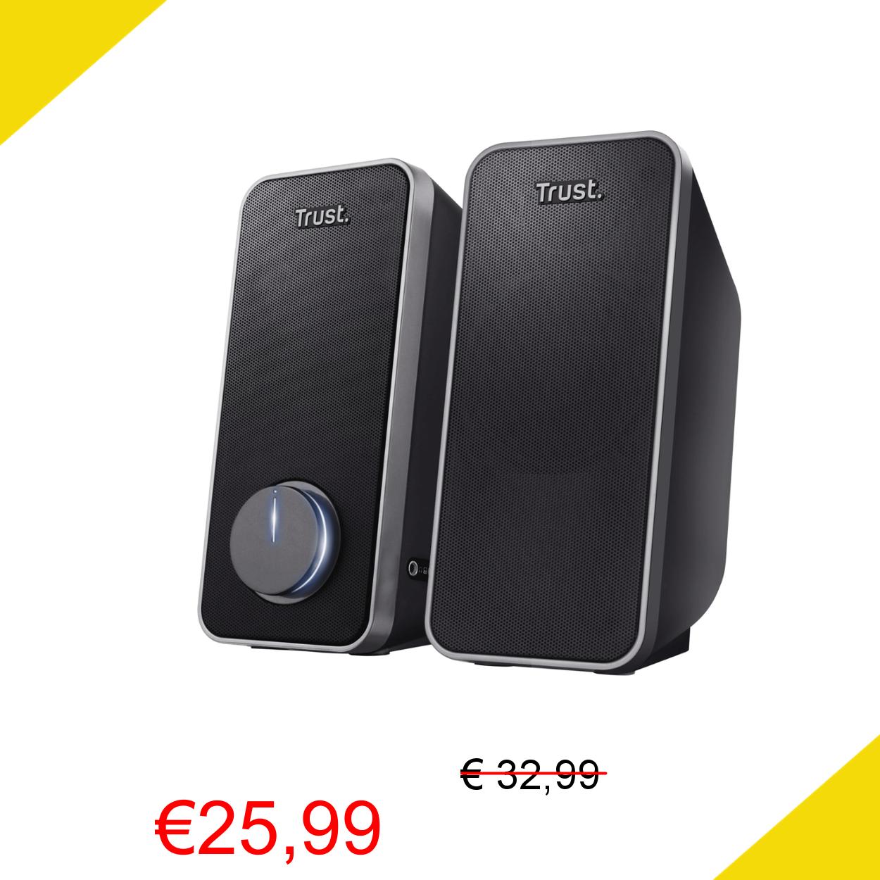 💥 Trust arys standard Casse PC 2.0 Set Altoparlanti Stereo, 28 W, Alimentazione USB, Jack AUX 3.5 mm, Casse per PC Fisso, Altoparlante per Computer, Portatile, Tablet, Smartphone - Nero