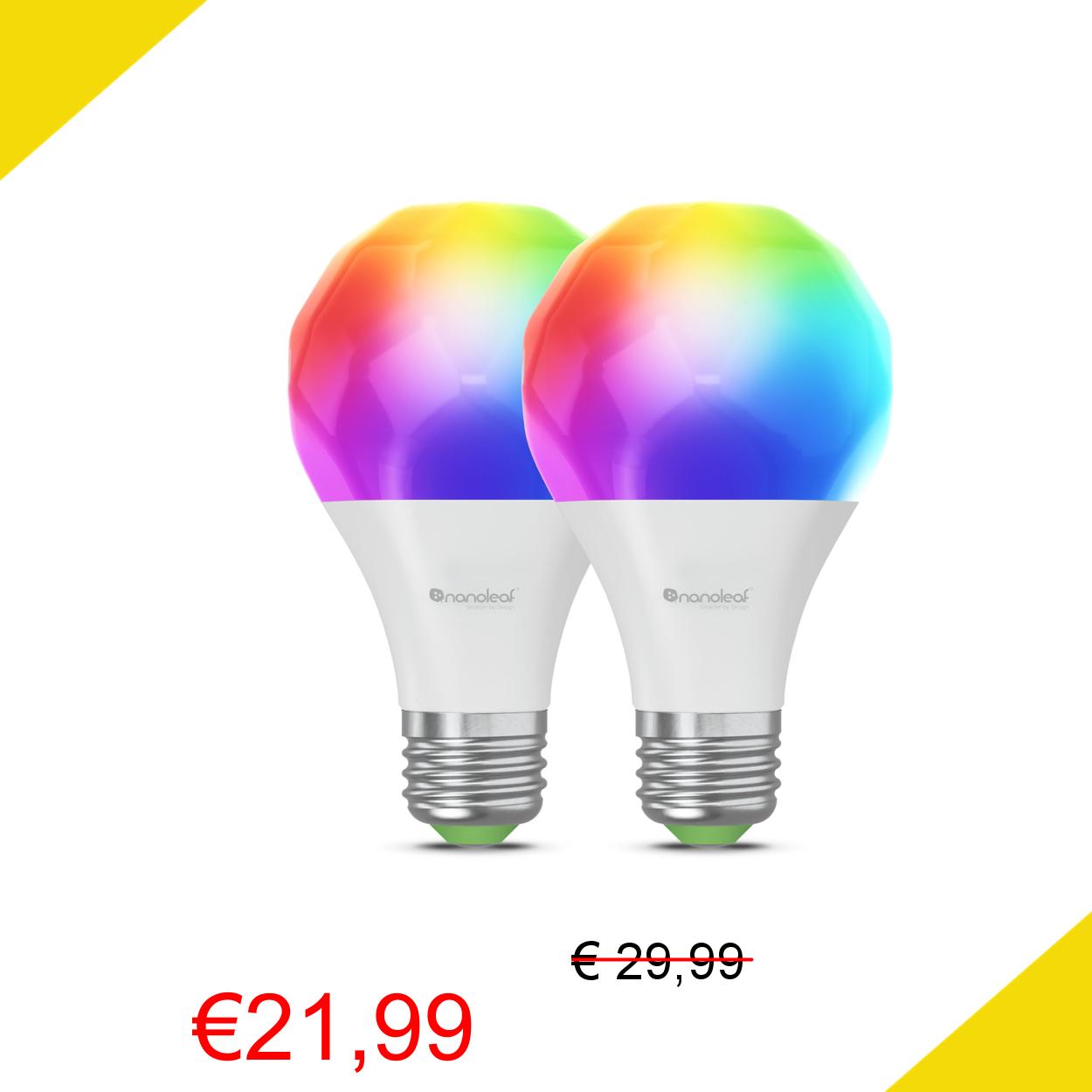 💥 Nanoleaf Lampadine LED Smart E27, RGB WiFi, compatibili con Alexa/Google Home, 9W dimmerabili, 2700K-6500K, Matter e Bluetooth, Necesito un centro, telecomando incluso, confezione da 2