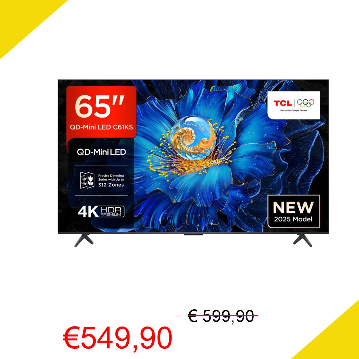 💥 TCL 65C61KS 65'' Mini LED TV, 4K UHD QLED, Smart Google TV con Dolby Atmos