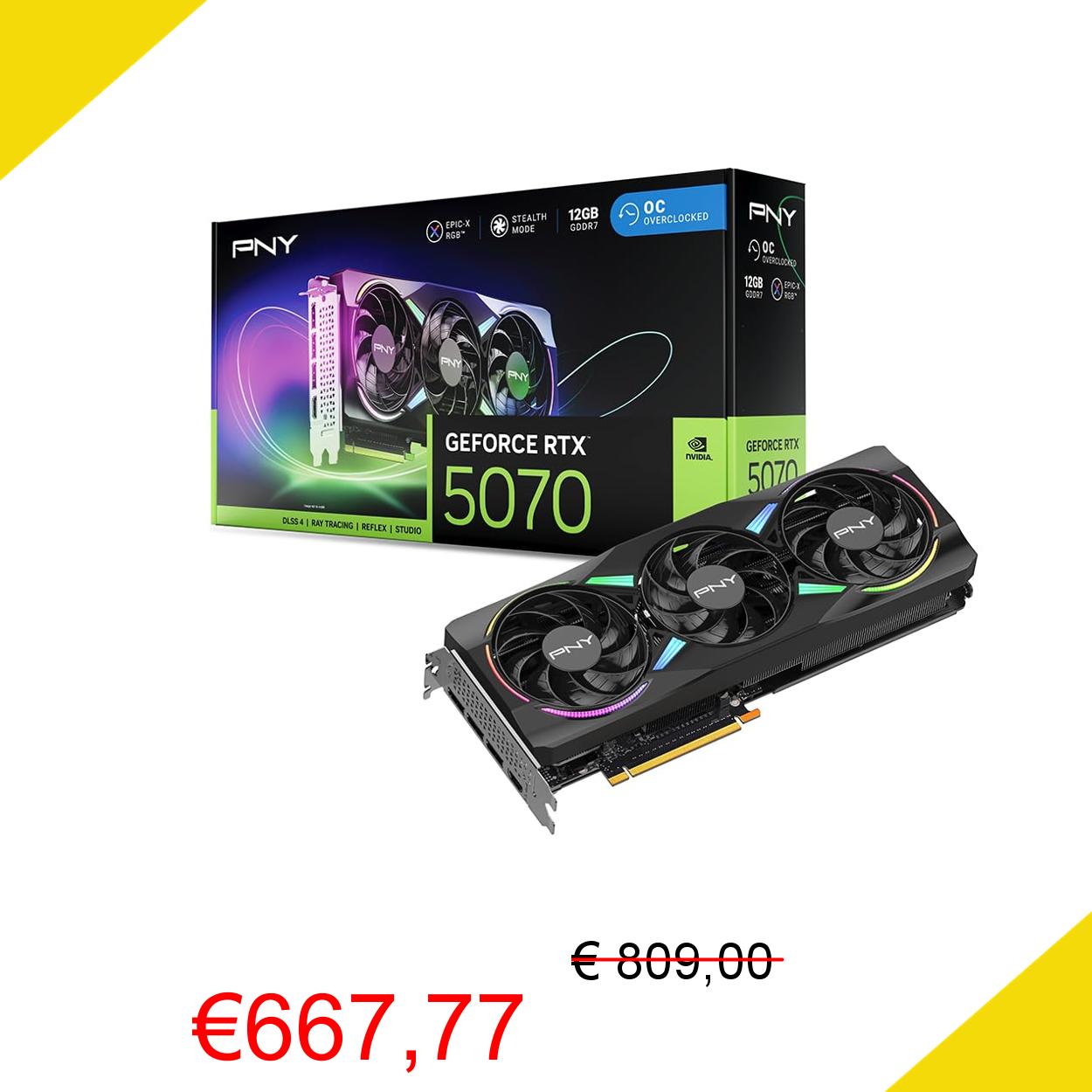 💥 PNY Scheda Grafica GeForce RTX™ 5070 12GB ARGB OC DLSS 4 Tripla Ventola