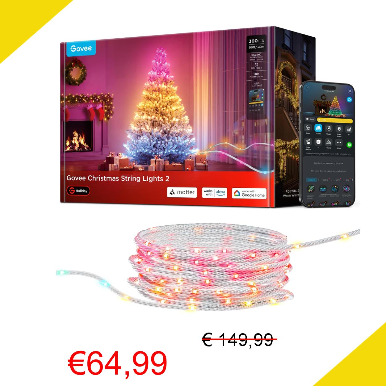 💥 Govee RGBWIC Illuminazione di Natale 30M, 300 LEDs Luci di Natalizie Halloween per Esterni Interni, 130+ Modalità di Scena, Shape Mapping e AIGC, IP67, Compatibili con Matter, Cavi Trasparenti
