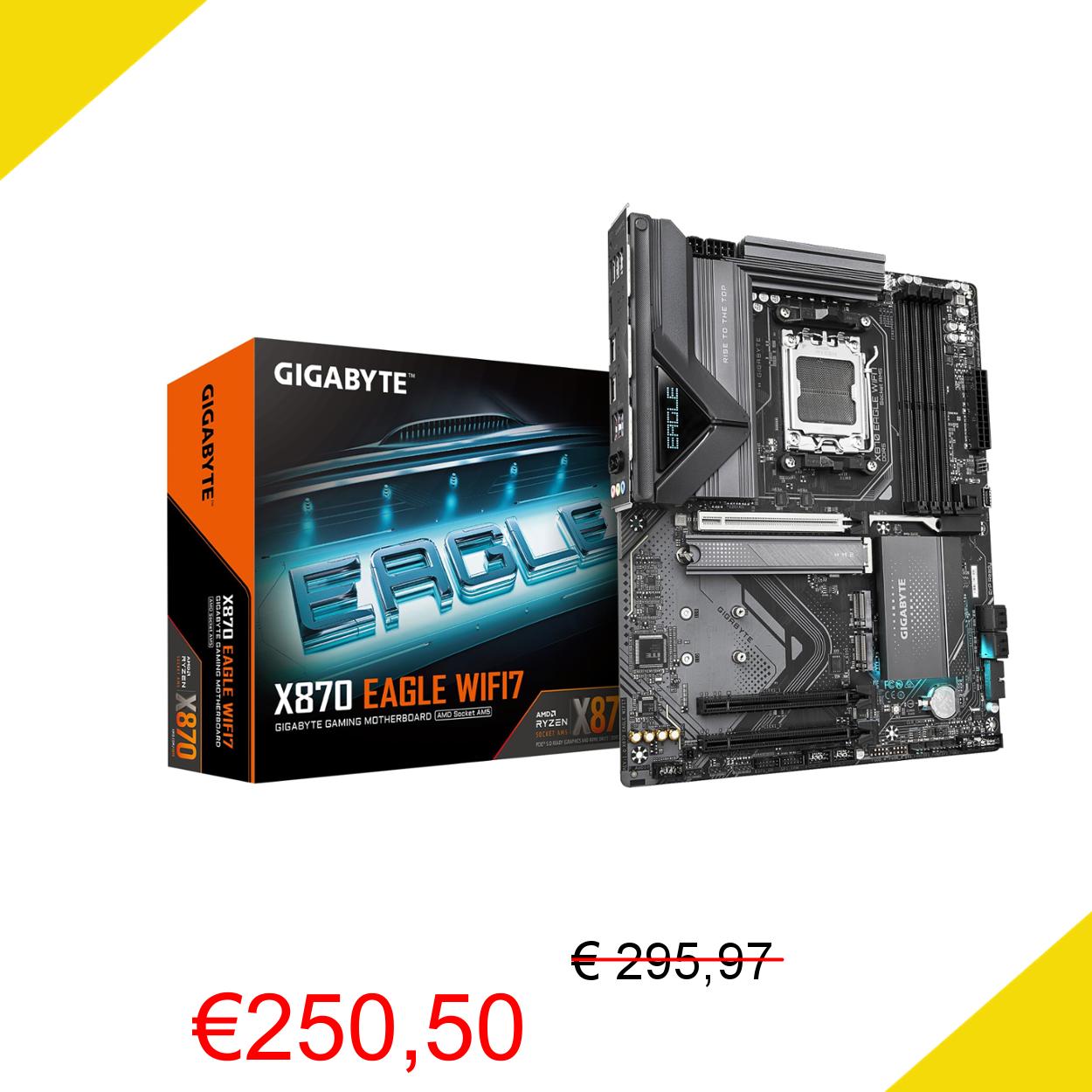 💥 GIGABYTE X870 EAGLE WIFI7 Scheda Madre - Supporta CPU AMD Ryzen 9000, VRM a 14+2+2 fasi, fino a 8000MHz DDR5 (OC), 1xPCIe 5.0, Wi-Fi 7, LAN 2.5GbE, USB 4