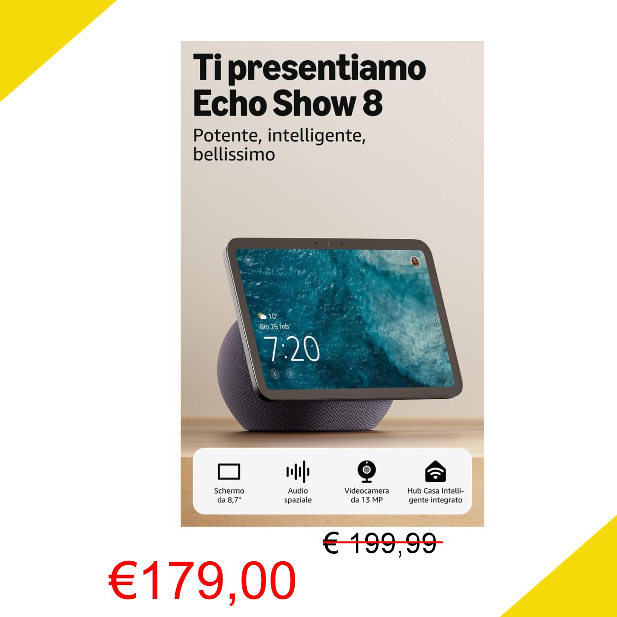 💥 Amazon Echo Show 8 (ultimo modello) - Schermo HD da 8,7" con colori vibranti, audio spaziale e Alexa, Grafite