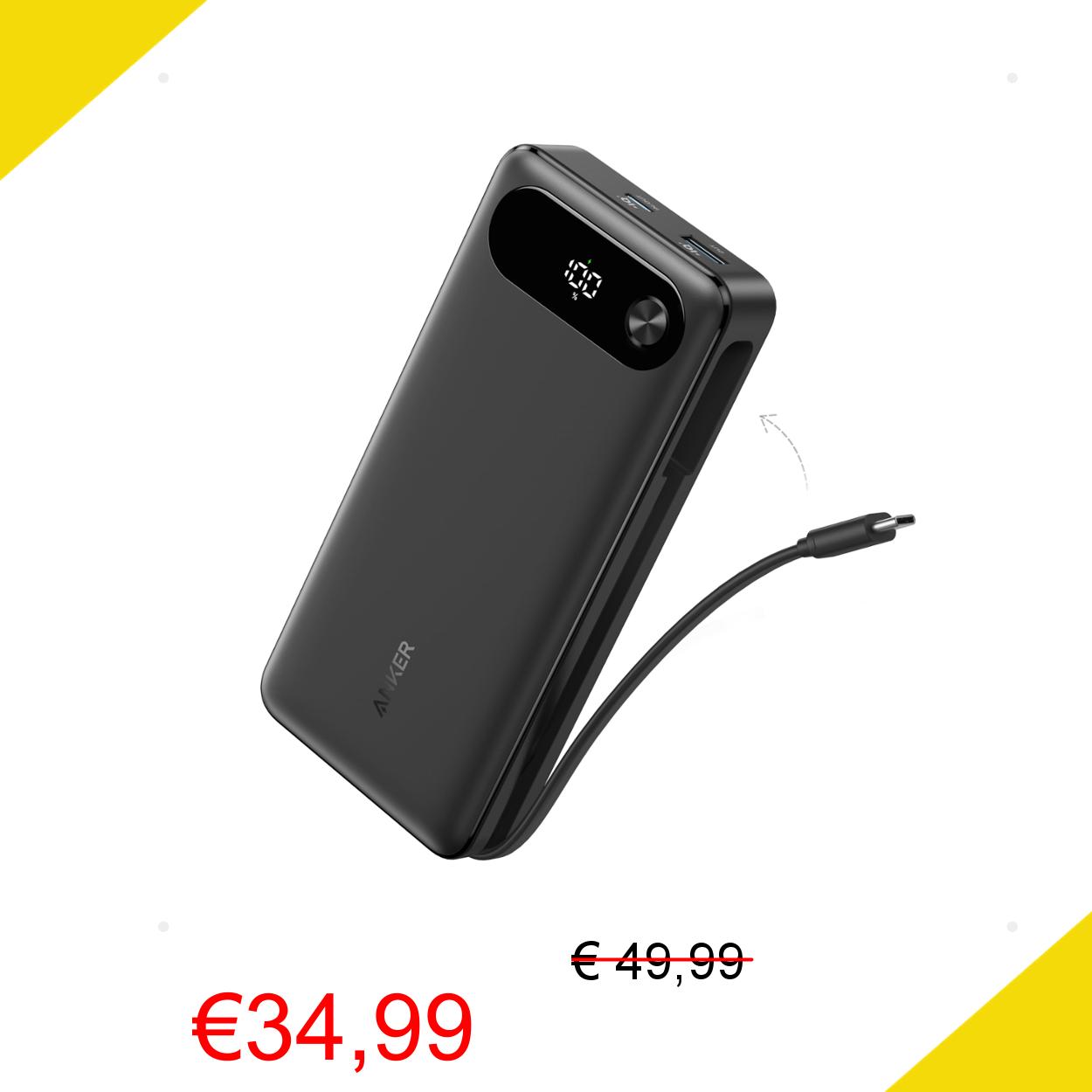 💥 Anker Power Bank, Caricabatterie Portatile da 20.000 mAh, con Cavo USB C Integrato, Batteria a Ricarica Rapida 87 W, 2 USB-C e 1 USB-A, per MacBook, iPhone 17/16 serie, Samsung, Switch, e Altro Ancora