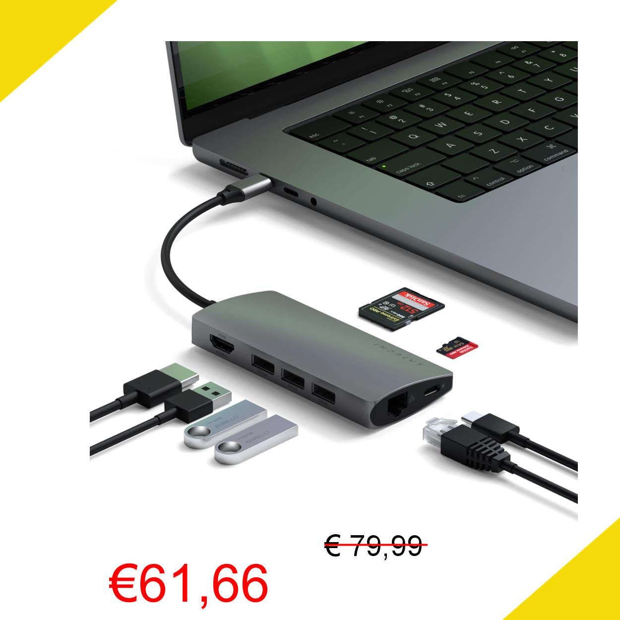 💥 SATECHI 8 in 1 USB-C Hub V2, HDMI 4K, PD 115W, 3x USB-A, Ethernet, SD/MicroSD, per MacBook Air e Pro, iPad, iPhone, Windows, Surface, ThinkPad, Chromebook e altro – Grigio Siderale