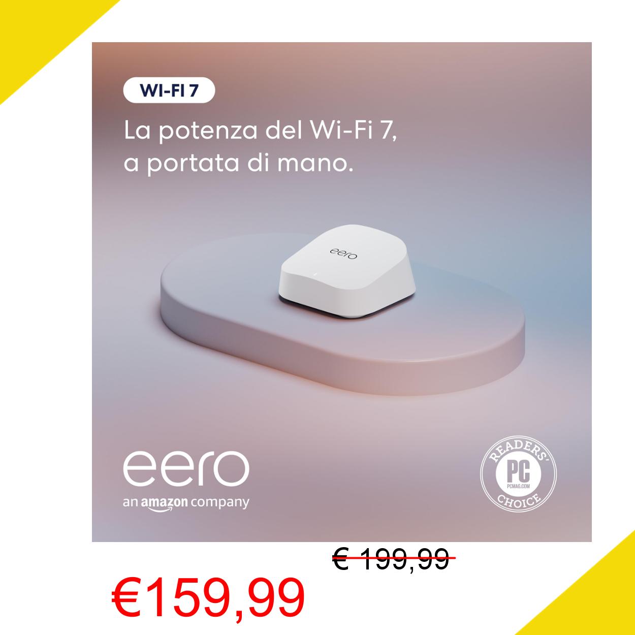 💥 Rrouter Wi-Fi 7 mesh dual-band Amazon eero 7 (modello più recente) - Supporta connessioni Internet fino a 2,5 Gbps, copertura fino a 190 m², confezione da 1