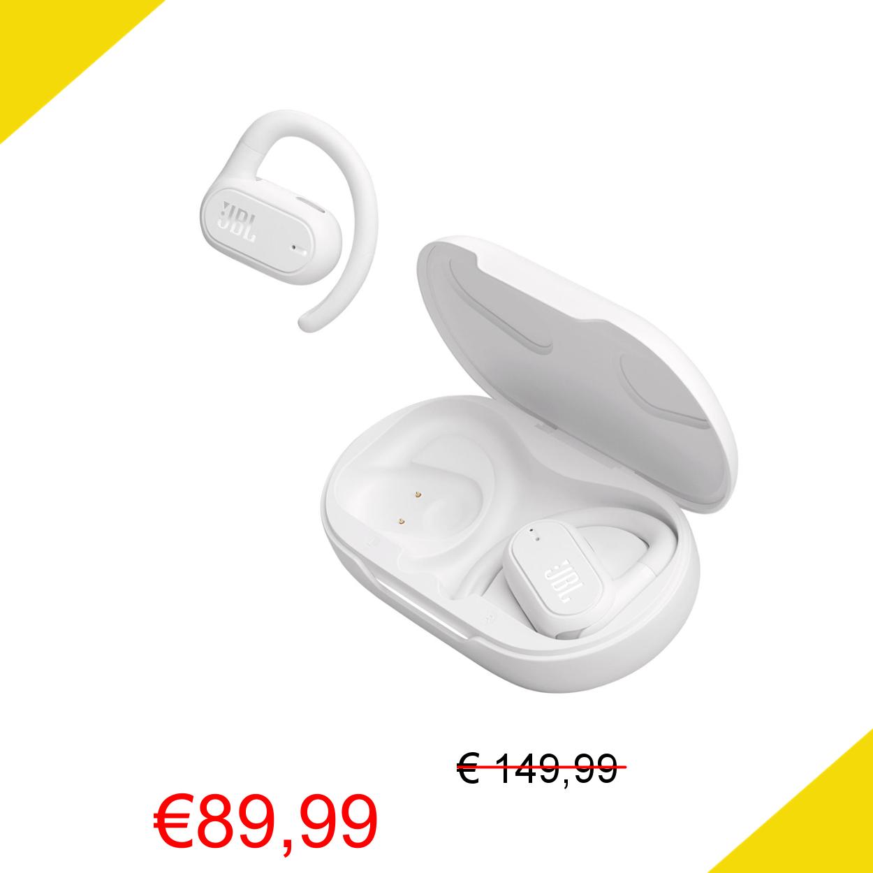 💥 JBL Soundgear Sense Auricolari In-Ear True Wireless Bluetooth con Design Open-Ear, Impermeabili a Schizzi e Polvere IP54, Bassi Puri, Dual Connect, 4 Microfoni, fino a 24 h di Autonomia, Bianco