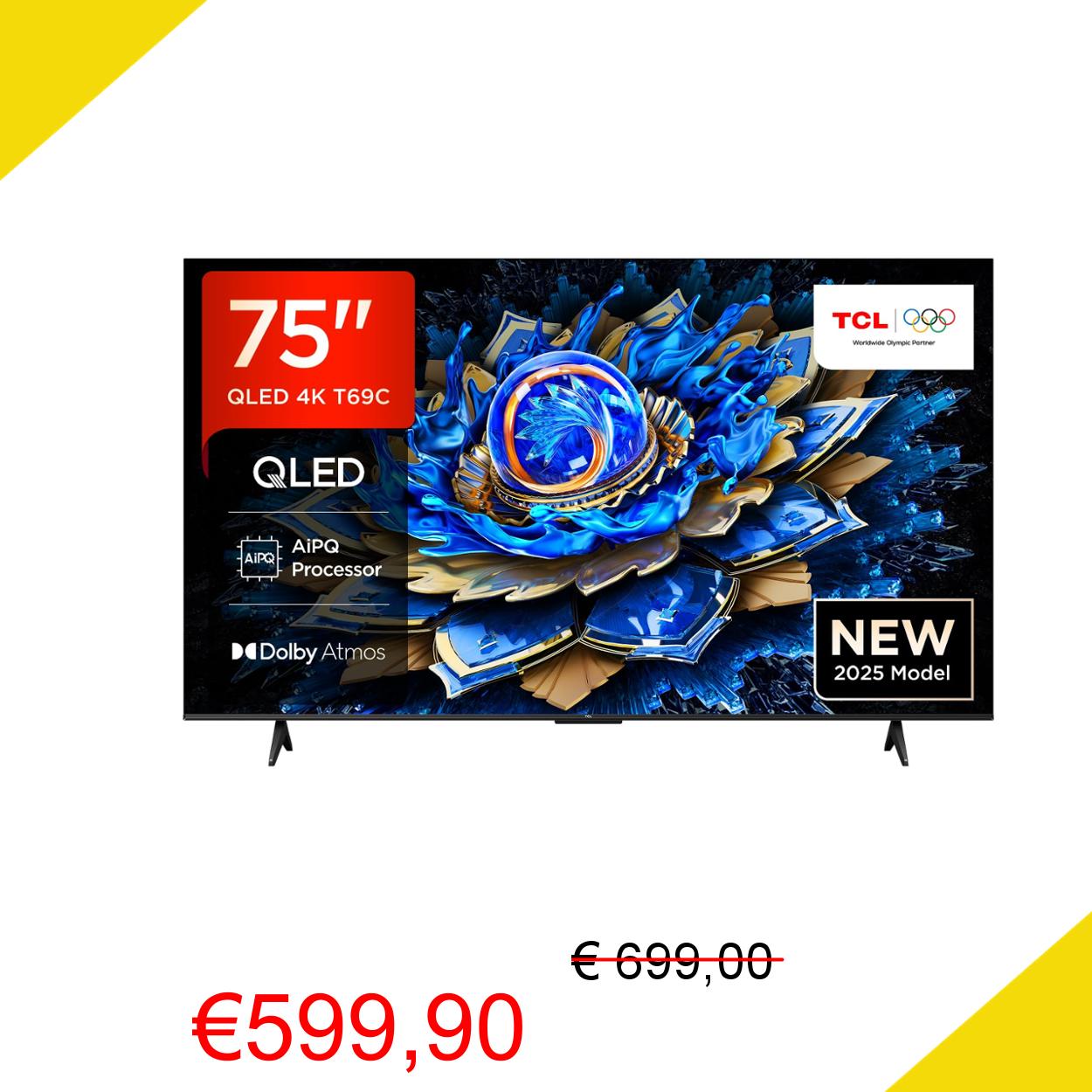 💥 TCL 75T69C 75” QLED 60HZ 4K HDR, Google TV, Smart TV (Dolby Vision & Atmos, Motion clarity, compatibile con Google Assistant & Alexa), 2025