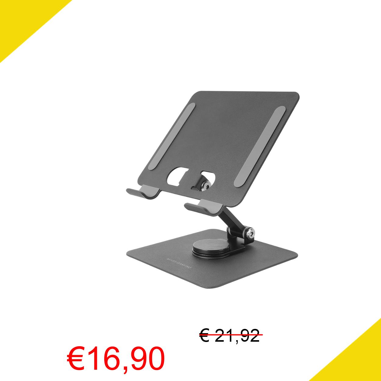💥 Mars Gaming MA-RST, Supporto per Tablet e Convertibile 2in1 fino a 13", Girevole a 360° + Regolabile in Altezza e Angolo 180°, Leggero Supporto Tablet Pieghevole Acciaio, Antiscivolo, Nero