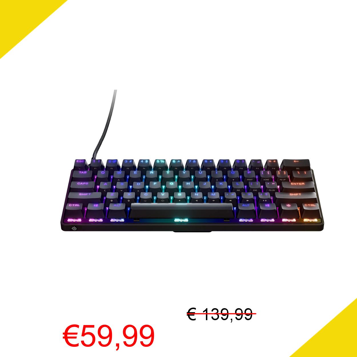 💥 SteelSeries Apex 9 Mini - Tastiera meccanica da gaming - Switch ottici - Azionamento a 2 punti - Forma compatto mini 60% per eSport - Switch intercambiabili a caldo - Layout americano (QWERTY)