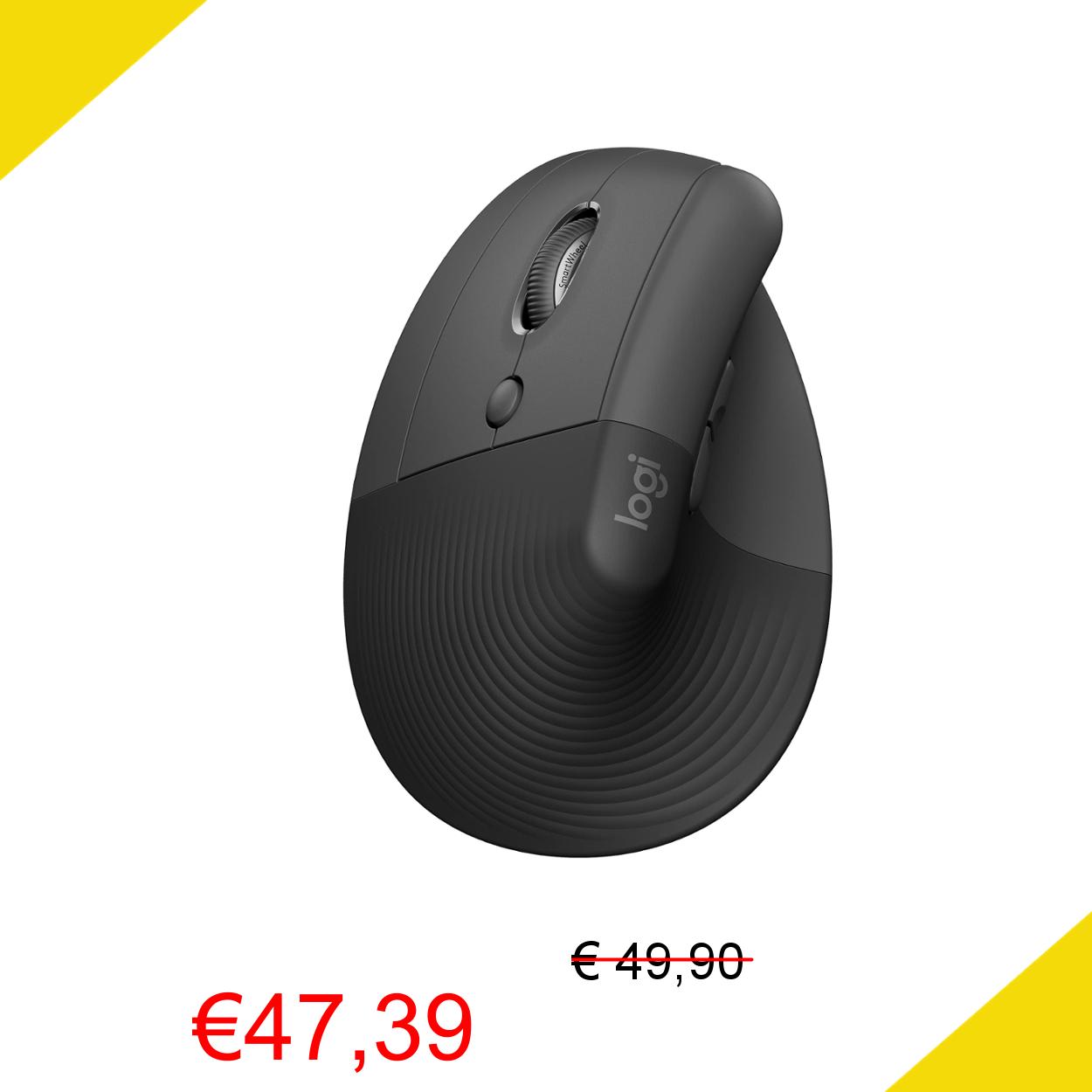 💥 Logitech Lift Left Mouse Ergonomico Verticale, per Mancini, Senza Fili, Bluetooth o Logi Bolt USB, Clic Silenziosi, 4 Tasti, Compatibile con Windows / macOS / iPadOS, Laptop, PC - Grafite