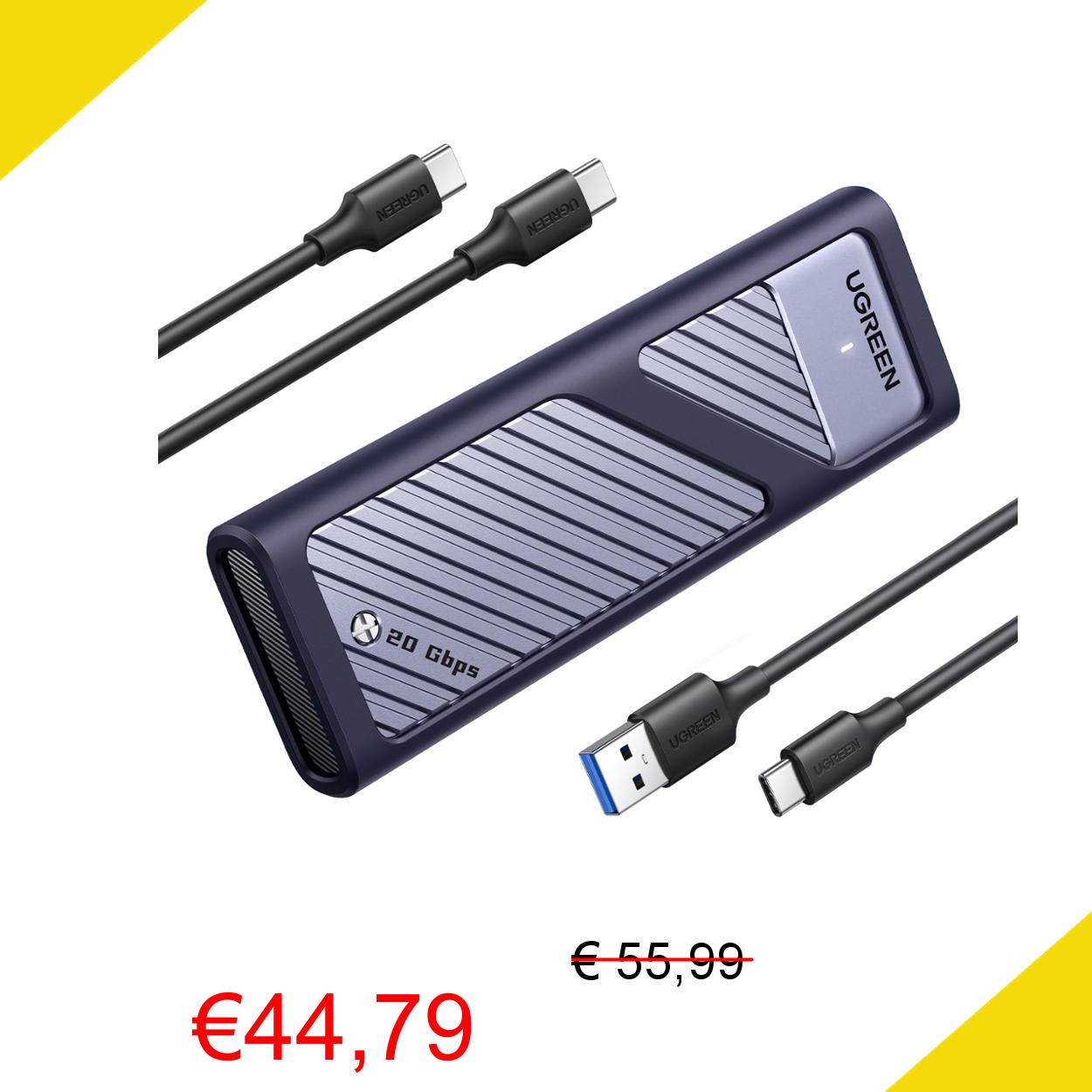 💥 UGREEN Case SSD M.2 NVMe SATA 20Gbps USB C 3.2 Gen 2x2, Enclosure per Disco Rigido M/M&B Key 2230/2242/2260/2280, Case Hard Disk con Cavo Compatibile con 970 Evo Plus 980 PRO WD SN770 Kingston