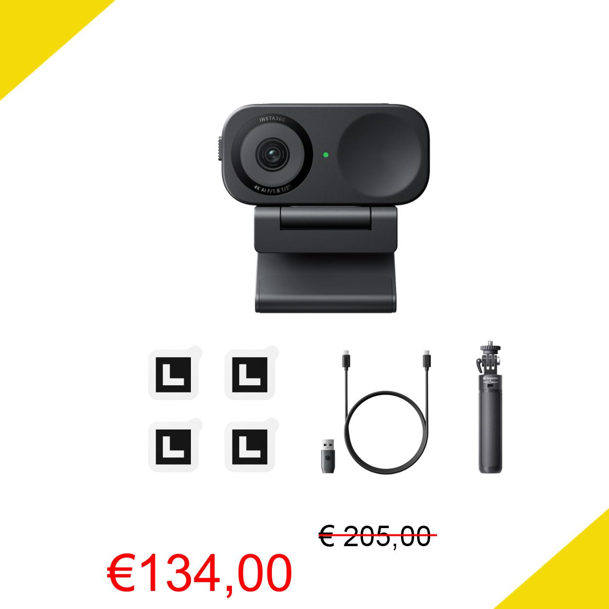 💥 Insta360 Link 2C Pack Treppiede Nero- Webcam 4K per PC/Mac, Sensore da 1/2", Auto inquadratura, HDR, Mic di cancellazione del rumore IA, Controllo gestuale per lo streaming, Videochiamate, Gaming