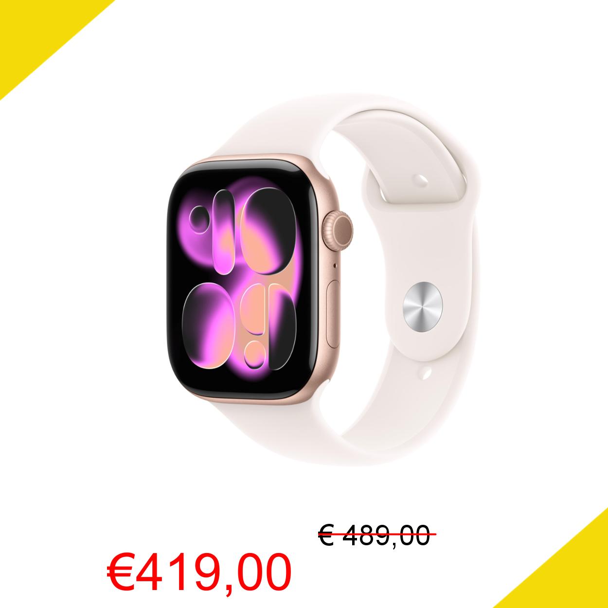 💥 Apple Watch Series 11 GPS, Cassa 46 mm in alluminio color oro rosa con Cinturino Sport rosa fard - S/M