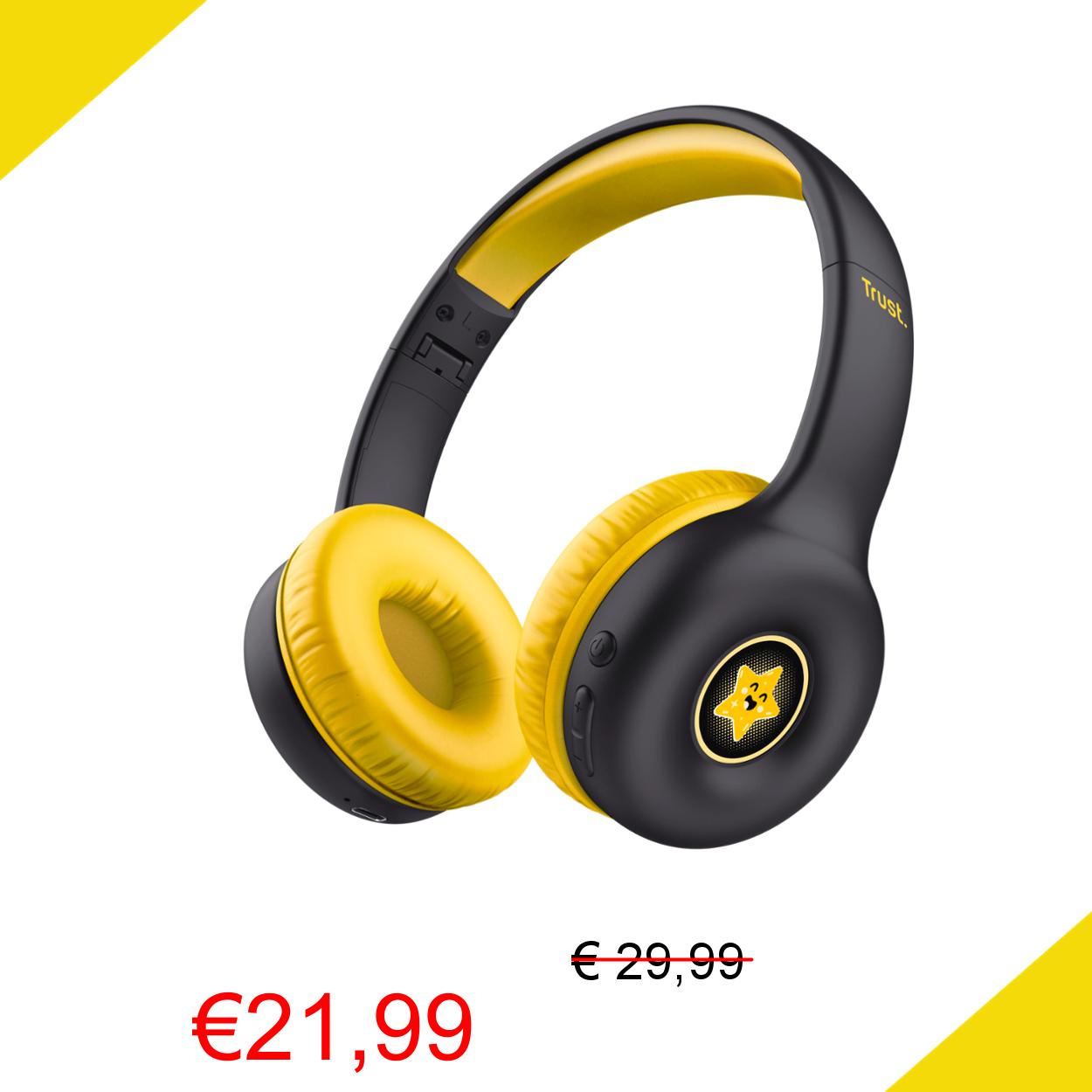 💥 Trust Nouna Cuffie Bluetooth per Bambini 4-10 Anni con Limitazione del Volume (85dB), Cuffie On Ear Pieghevoli con Microfono e Adesivi, Cuffie Wireless, 15h di Riproduzione per Musica, Nero