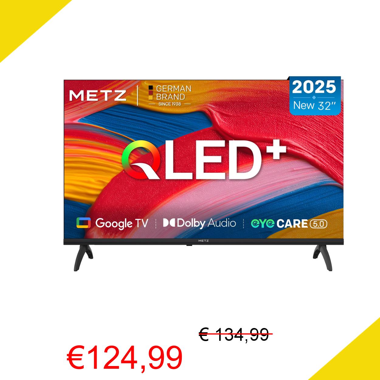 💥 Metz QLED 32 Pollici Smart TV HD, 32MQF7000Z, HDR10, Dolby Audio, Riduzione Luce Blu, Google TV, Googlecast,Tuner DVB-T/T2/C/S/S2/Analogico
