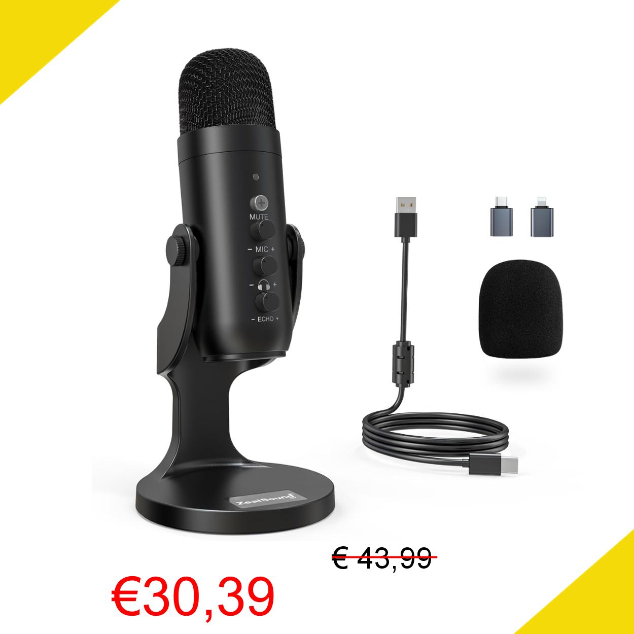 💥 zealsound Microfono PC, Microfono a Condensatore per Phone Pad Computer, Laptop, Telefono, Muto, Echo, Riduzione del rumore, Cardioide Mic per Streaming, ASMR, Gaming, Podcast, YouTube, Twitch, nero