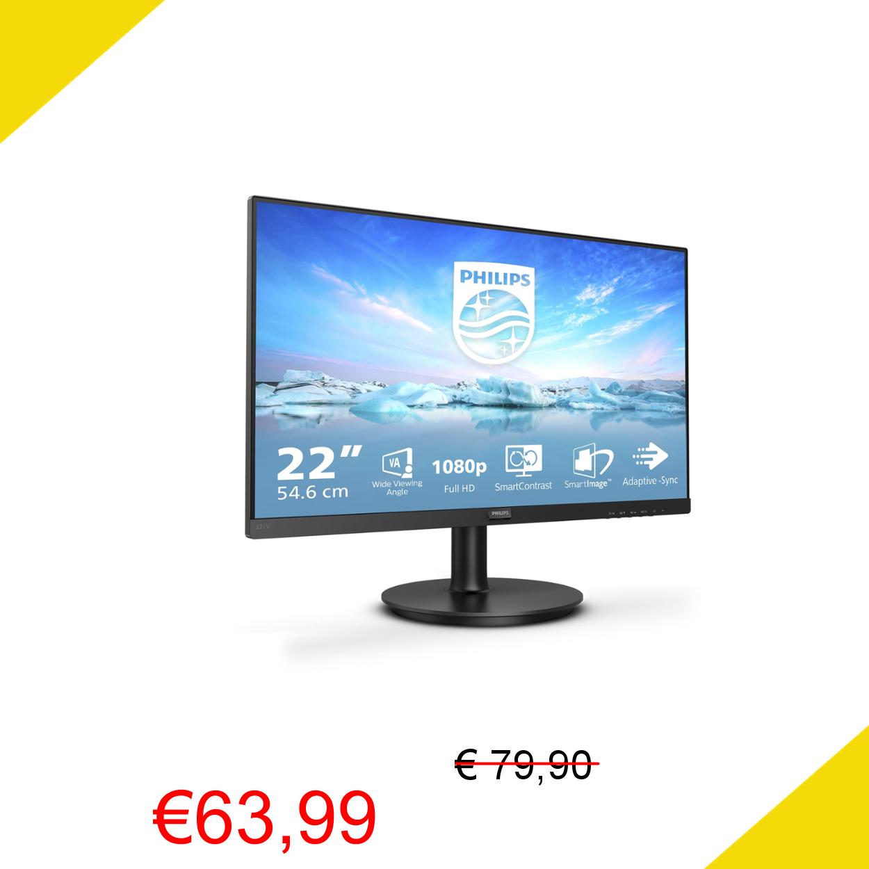 💥 Philips 221V8 Gaming Monitor Adaptive Sync 75 Hz, Va, Full Hd, 4Ms, Hdmi, Vga, Attacco Vesa, Nero, 22"