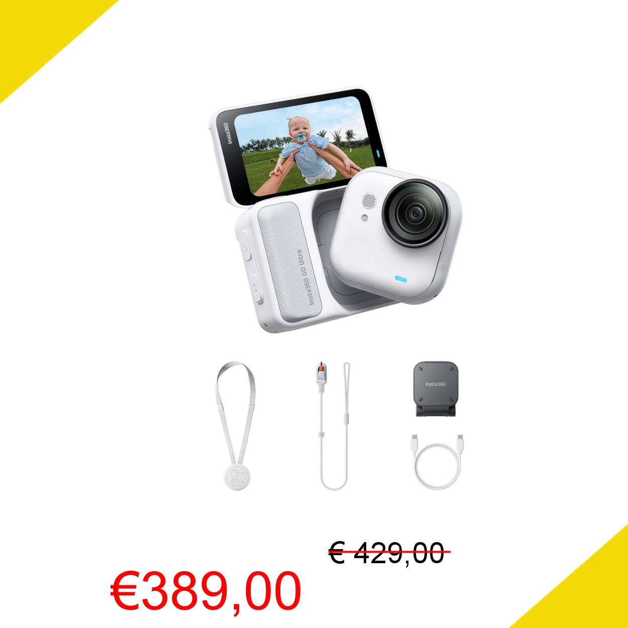 💥 Insta360 GO Ultra Pack Standard Bianco Artico - action cam mini 4K a mani libere, indossabile, superba in bassa luce, montala ovunque, stabilizzazione FlowState, 200 min di carica, bici e corsa