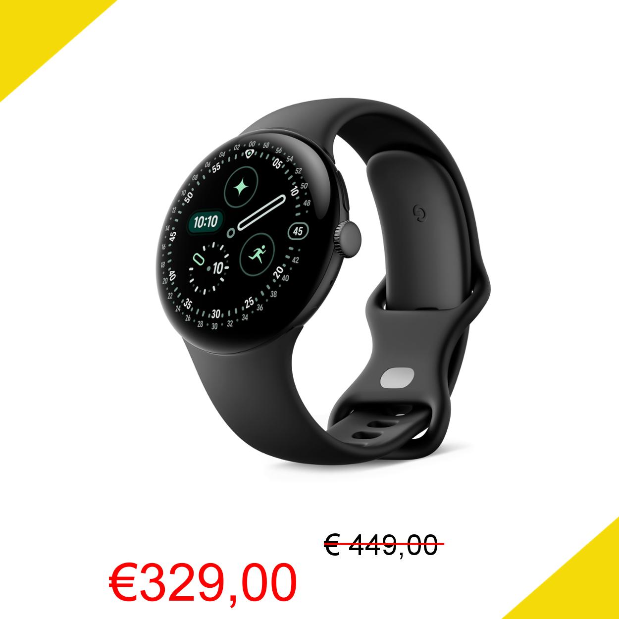 💥 Google Pixel Watch 4 (45 mm) - Smartwatch Android con tracker per fitness e benessere, e assistente virtuale Gemini - Cassa in alluminio nero opaco - Cinturino sportivo nero ossidiana - Wi-Fi