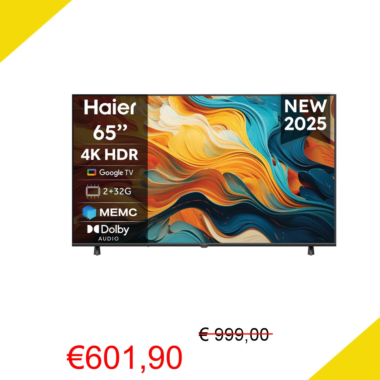 💥 Haier LED 4K UHD H65K85FUX 65" Smart TV, Google TV, Dolby Audio, HDR 10, Telecomando Smart, Google Assistant, Bluetooth 5.1, DBX TV, HDMI 2.1 x 4 [2025]