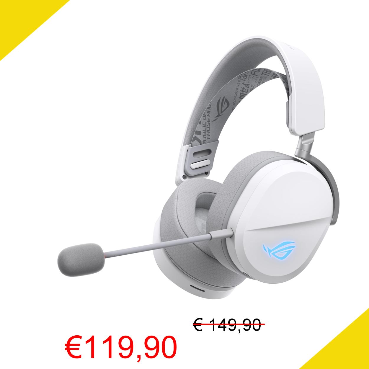 💥 ASUS ROG Pelta, Cuffie da Gaming Senza Fili, Connessione 2.4GHz e Bluetooth, Driver Placcati in Titanio da 50mm, Microfono da 10mm, 60 Ore di Batteria, Solo 309g, per PC, PS5 e Switch, Bianco