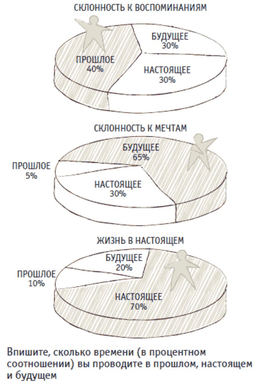 Чтобы определить себя, задайте вопрос: сколько своего времени я провожу думая о прошлом, сколько о настоящем и сколько о будущем?