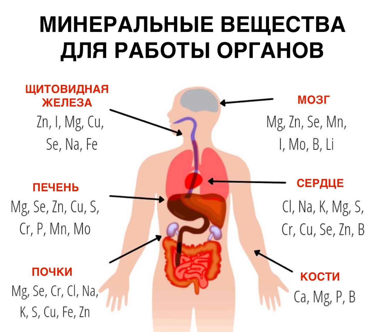 Минеральные вещества необходимые для работы основных органов