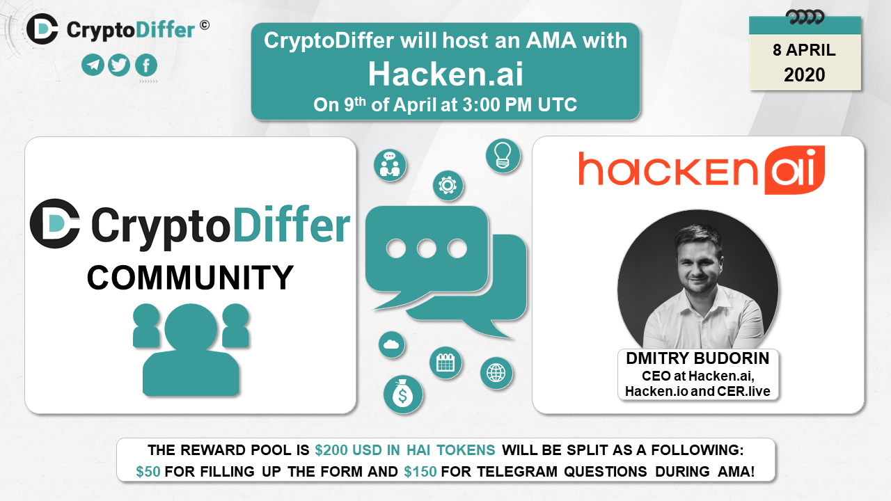 ❗️Dear community, CryptoDiffer will hold an AMA with Hacken AI on the 9 of April at 3:00 PM UTC in the CryptoDiffer Telegram Chat!